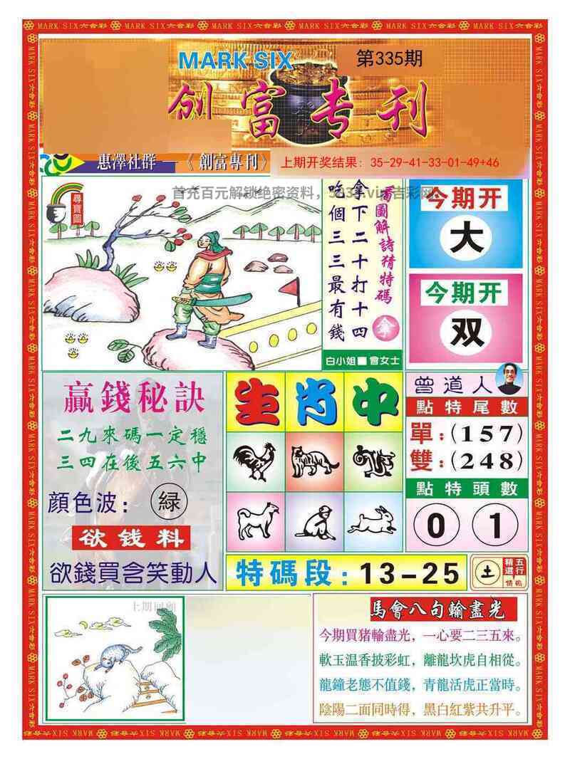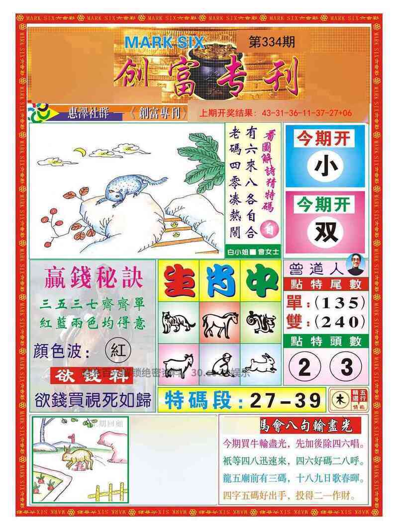 333期:赌王独合【合字】开:鼠06准